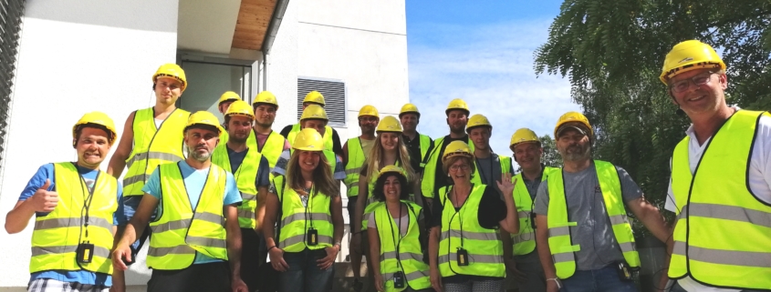 Unser Ausflug startete früh morgens mit der Betriebsbesichtigung unseres Lieferanten best wood SCHNEIDER ® GmbH in Eberhardzell. Ausgestattet mit Headset, Weste und Helm ging es los um das Betriebsgelände zu erkunden.
