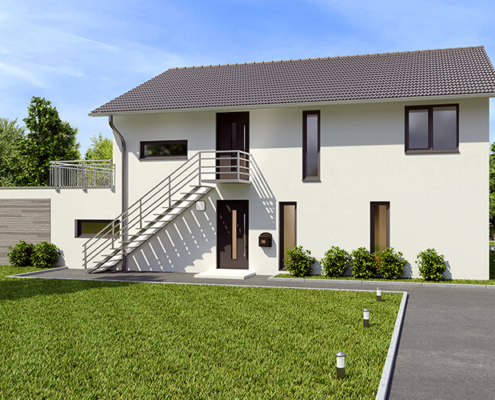 Dieses Haus verfügt über zwei separate Wohneinheiten auf zwei Etagen. Das Erdgeschoss können Sie in der Variante Barrierefrei oder Family wählen. Es bietet Platz für zwei oder drei Schlafräume, einen offenen Wohn- und Essbereich sowie eine großzügige Terrasse. Das Obergeschoss bietet Platz für zwei Schlafräume, ein Badezimmer und einen großzügigen Wohn- und Essbereich. Der große Balkon lädt zum Verweilen ein.