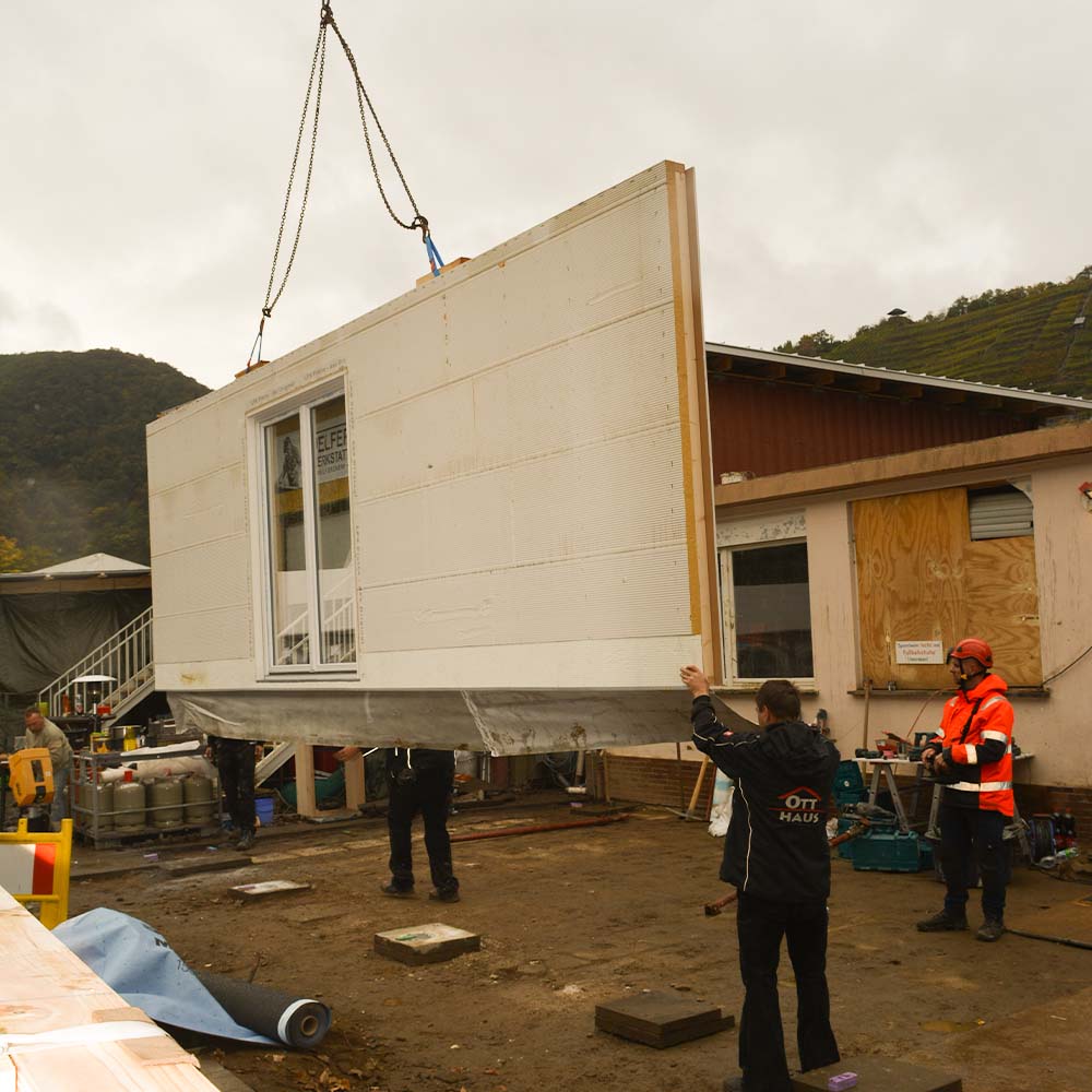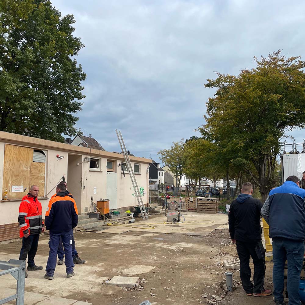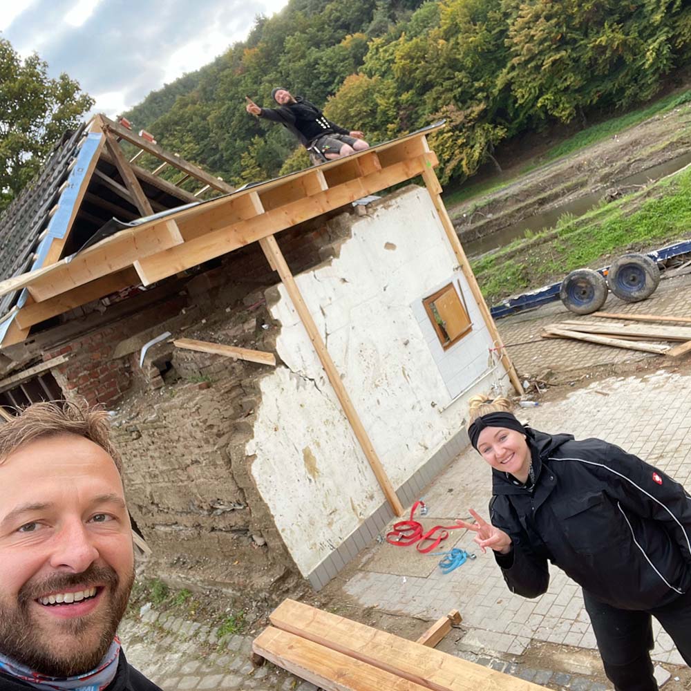 Es war eine schnelle und einfache Entscheidung, als uns Peter Hafner, ein freiwilliger Helfer im Ahrtal, über Social Media kontaktierte und um unsere Mithilfe beim Wiederaufbau nach der Flutkatastrophe bat. Natürlich würde unser Team alles möglich machen, um dort zu helfen. Somit sollte sich schon etwa zwei Wochen später der Hilfstrupp, beladen mit einem fertigen Anbau, der nur noch aufgestellt werden musste, auf den Weg machen. Doch dafür war noch einiges an Planung und Arbeit notwendig.