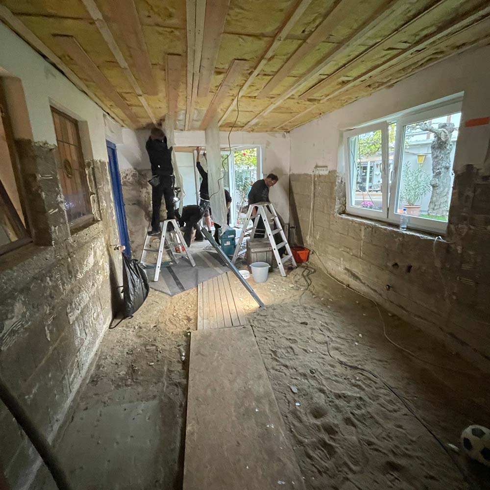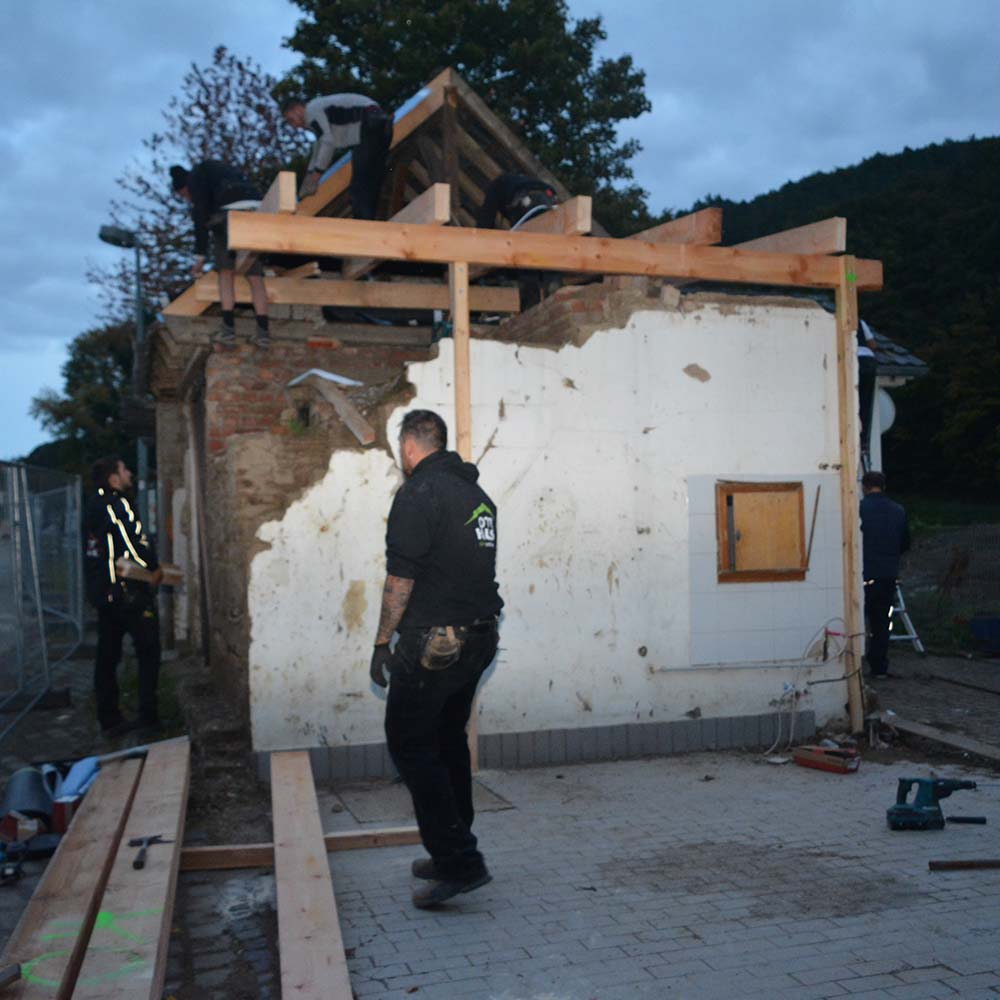 Um keine Zeit zu verlieren, teilte Zimmerermeister und Leiter unserer Hilfsaktion, Achim Eisele, uns in kleine Gruppen ein, sodass wir direkt mit mehreren Projekten beginnen konnten.