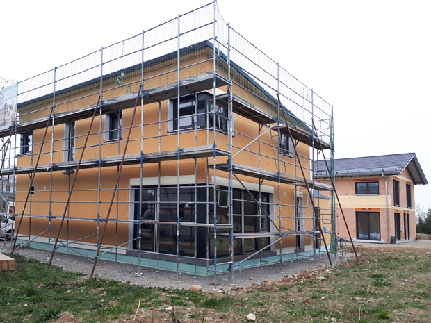 Das moderne Einfamilienhaus mit Pultdach und angebauter Garage ohne Keller bietet unserer jungen Bauherrenfamilie viel Platz. Die Fenster wurden bereits im Werk eingebaut und die Rohinstallationen der Gewerke Strom, Heizung und Sanitär sind im vollem Gange. Im DG findet sich Raum für vier Schlafzimmer, eine Ankleide und ein großzügiges Badezimmer. Das EG besticht mit einem großzügigen, ganz offen gestalteten Wohnraum mit Küche- und Essbereich.