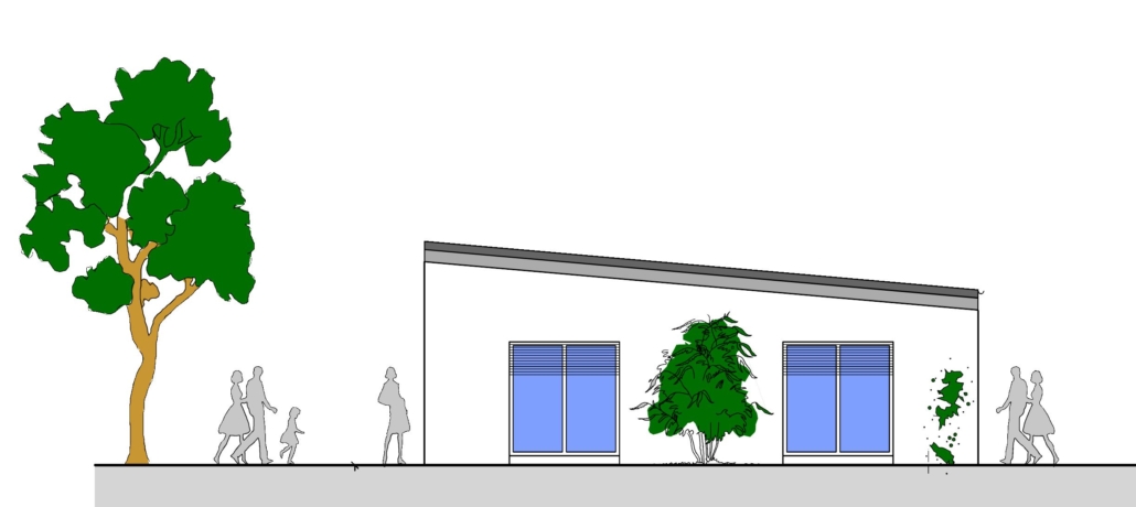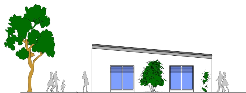 Alles auf einer Ebene, so stellen sich die Bauherren ihr zukünftiges Zuhause vor! Die Gäste werden in einer großzügigen Diele empfangen und gelangen von dort direkt in das sehr große Wohn-, Esszimmer mit einer offen angelegten Küche. Die Räume werden durch bodentiefe Fenster lichtdurchflutet. Hell soll es sein! Ebenso von der Diele aus erreichbar sind das Gästezimmer, der Hauswirtschaftsraum und das Gäste-WC.