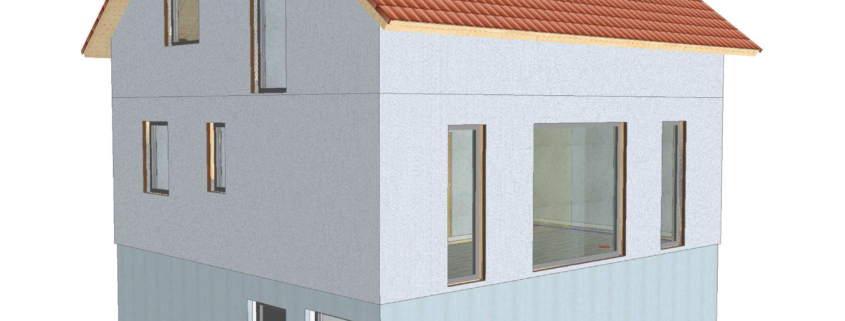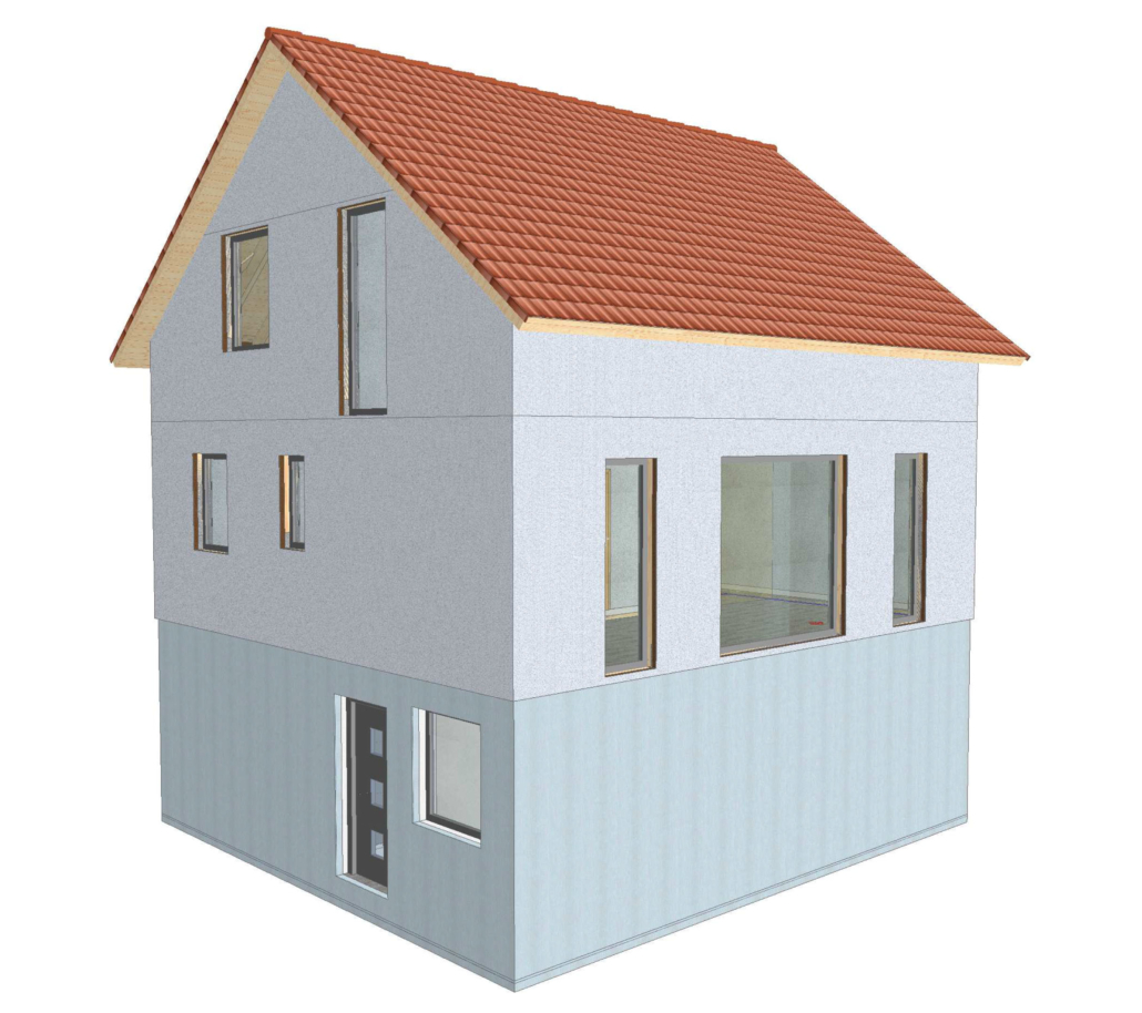 Im UG ist eine Einliegerwohnung mit Bad und einem separaten Technikraum geplant. Das Haus wird mit einer Proxon-Lüftungsheizung geheizt. Die Besonderheit hier: ein sparsames und ökologisches Heizen, das zugleich ein gesundes Raumklima mit frischer Luft erschafft.