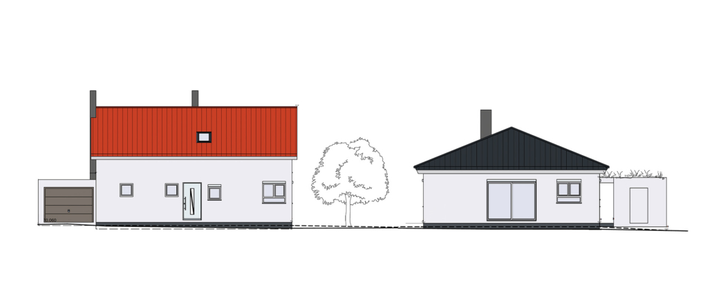 Der Technikraum befindet sich hinter der Treppe auf der linken Seite und ist mit einer Tür, die direkt in die Garage führt, ausgestattet. Die direkt angebaute Garage ist 25 Quadratmeter groß.