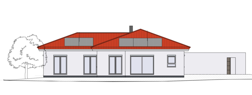 Bei dem Objekt handelt es sich um ein Einfamilienhaus als Bungalow auf einer Bodenplatte. Das Haus wird als Effizienzhaus 70 gefertigt.